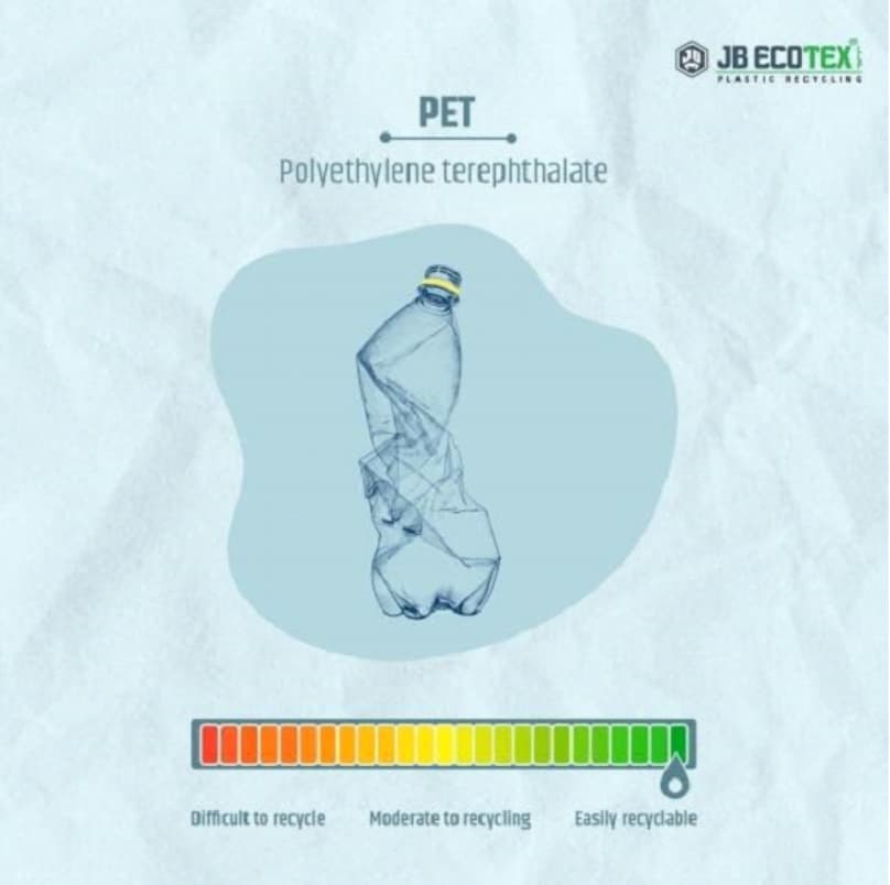 One of the most frequently used plastics is this one. It is light, robust, and usually transparent, and it's generally used in food packaging and textiles. This type of plastic is intended for one-time use. Also, these types of plastic can be recycled. For example- Soft-drink bottles, containers for food and other consumer products, water bottles, peanut butter jars.