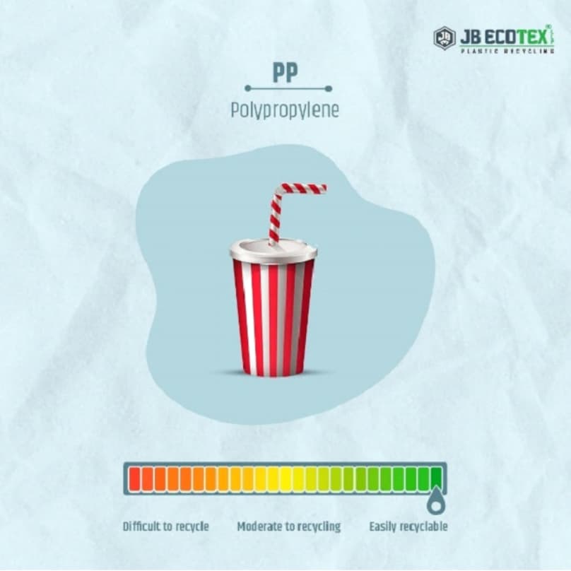 This is one of the most durable types of plastic. It has a higher heat resistance than certain others, making it excellent for food packaging and storage that is designed to contain hot foods or be heated. It's flexible enough to bend somewhat, yet it holds its shape and strength for a long period. For example- Straws, bottle caps, prescription bottles, hot food containers, packaging tape, disposable diapers, and DVD/CD boxes.