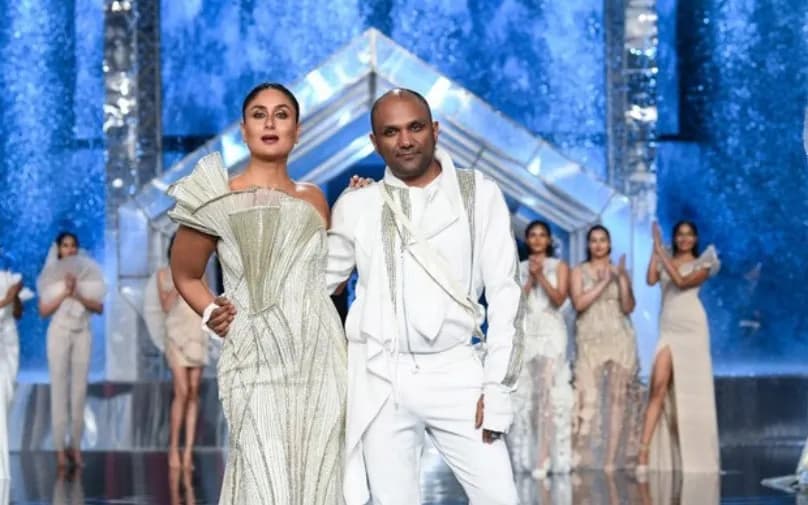 The very popular couturist, Gaurav Gupta takes an innovative approach to sustainability by working with materials excavated from landfills and oceans. By weaving crisp packets, biscuit wrappers, and plastic bottles into fabrics, he crafts signature red-carpet-ready dresses and gowns with an eco-conscious twist. I mean, the showstopper outfit in the 2021 Fall Lakme Fashion Week Finale. Need we say more?